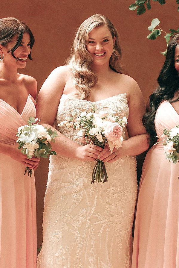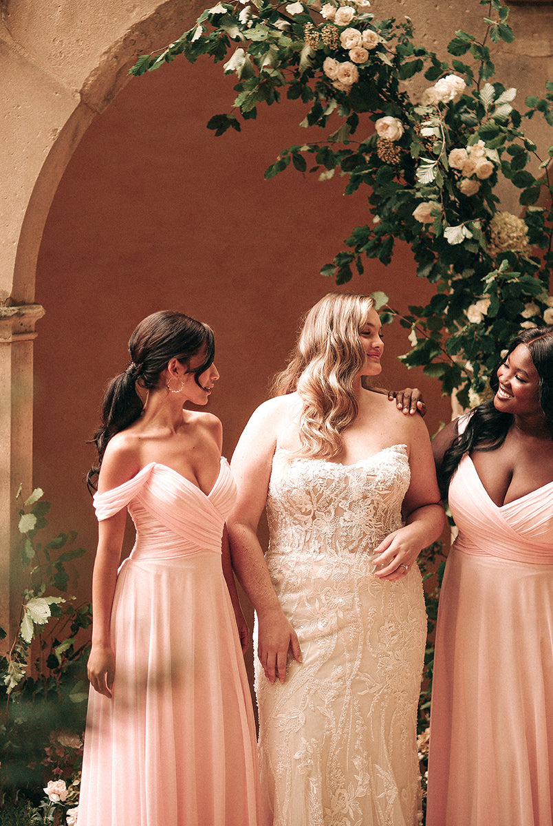 Our bridesmaids’ gowns also come in a range of sizes, with many ranging from 00 to 28, so all of your bridesmaids can feel confident in a knockout dress that fits beautifully. Plus, with a stunning array of colors and luxurious fabric options, you can create a cohesive look that perfectly complements your wedding theme.