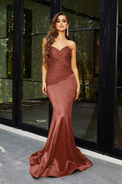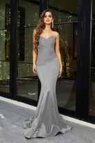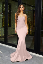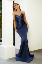 Introducing the Alice‚ a strapless stunner that exudes timeless elegance and charm. This fitted gown features a flattering mermaid silhouette, designed to beautifully enhance your curves. The pointed bodice and folded pleat details at the front create a sophisticated, structured look that is both chic and figure-flattering. Crafted from high-stretch fabric for all-day comfort, the Alice is the perfect blend of glamour and ease, ensuring you feel confident and radiant as you celebrate in style.