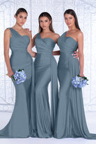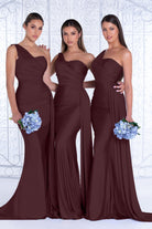 Introducing the Anna‚ is a timeless one-shoulder masterpiece that perfectly combines sophistication and style. This fitted gown features a chic side skirt for an elegant, flowing silhouette. Made from high-stretch fabric, the Anna offers a flattering fit and all-day comfort, making it the ideal choice for bridesmaids ready to shine on the big day.