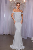 Meet the Eleanor, an exquisite choice that effortlessly blends sophistication and style for your bridal party. Featuring a sweetheart-shaped bodice with draped off-the-shoulder straps, this stunning dress boasts visible boning for added structure and a flattering fit. The sleek, fitted floor-length design and subtle train at the back exude grace and charm, while the stretch ensures comfort and confidence. Let your bridesmaids shine in the refined beauty of the Eleanor on your special day!