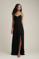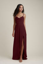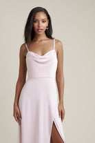 The minimalism of the 90s is back and better than ever with the Eliot gown; this chic, strappy look features a beautifully draped cowl neckline.