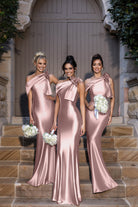 Introducing the Faline, a captivating one-shoulder fitted masterpiece designed for bridesmaids who want to make a statement. The elegant bow on the shoulder adds a touch of whimsy and romance, while the sleek silhouette beautifully highlights your figure. A chic center back slit offers a hint of allure, ensuring you will turn heads as you walk down the aisle.
