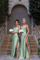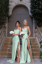 Introducing the Isabella, a captivating strapless fitted dress that exudes timeless elegance and charm. Adorned with exquisite pearl detail trim along the bodice, this gown adds a touch of sophistication that is sure to make you stand out in the bridal party. The alluring side slit not only enhances the silhouette but also. The Isabella offers both comfort and style, ensuring you feel confident and radiant as you celebrate the special day. Embrace the beauty and grace of the Isabella as you support the bride in unforgettable fashion!
