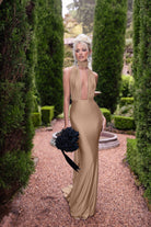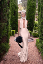Step into a night of glamour with the stunning Lily. This sultry formal piece features a sleek sleeveless bodice. Sculpting tucks create a dazzling fit, while the self-fabric sashing gracefully wraps the midriff, adding a touch of satiny allure. The formfitting skirt cascades into liquid flutters that gracefully envelop the feet, culminating in a breath-taking floor-brushing train. With the Lily your bridal party will radiate confidence and sophistication, making every moment of the celebration unforgettable.