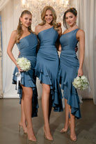 Introducing the Lindsay, a stunning one-shoulder design that beautifully enhances the figure with its flattering, subtly ruched waistline. The dress is thoughtfully finished with a double frill detail along the hem, adding a touch of playful sophistication. Crafted from luxurious satin fabric with medium-high stretch, this gown combines comfort and elegance, making it the perfect choice for your bridesmaids to radiate timeless beauty and effortless charm on your special day.