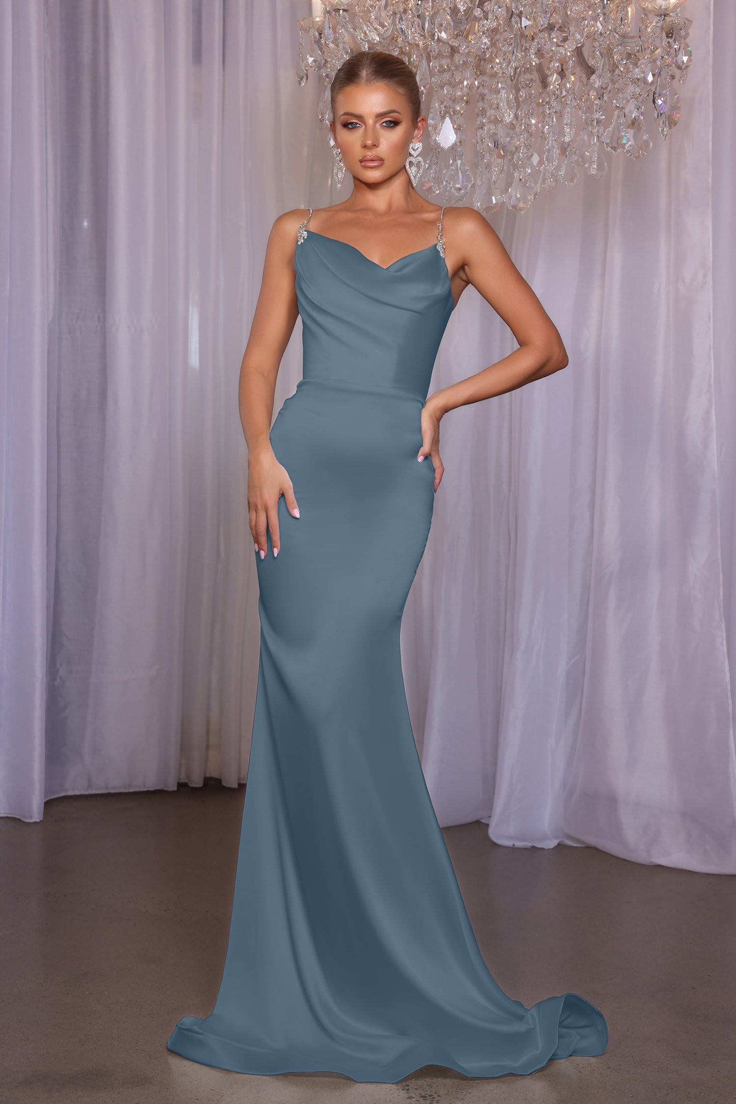 Introducing the Maella, a stunning mermaid fitted masterpiece designed to make your bridesmaids shine. This floor-length gown features exquisite ruching at the bodice, creating a flattering silhouette that hugs curves in all the right places. With its elegant design and dramatic flair, the Maella is perfect for those who want to make a bold statement. Its tailored fit ensures a polished look that enhances confidence and sophistication.