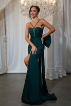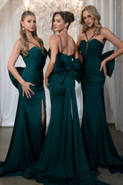 Introducing the Nicola, a beautifully romantic and flattering choice for your bridesmaids. Featuring a sweetheart-shaped bodice with delicate thin straps that cross over at the front, this gown is designed to enhance every figure. The soft ruching across the bust and down the body creates a stunning silhouette, while a daring center split adds a touch of drama. For an extra wow factor, the gown is finished with a detachable bow at the back, adding a playful yet sophisticated flair. Crafted from luxurious satin fabric with medium stretch, the Nicola offers the perfect balance of comfort and elegance, making it an unforgettable option for your bridal party.