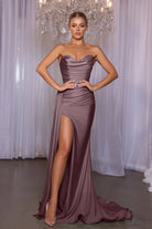 Introducing the stunning Viola, a strapless fitted masterpiece designed to turn heads and make your bridesmaids feel fabulous. Featuring exquisite ruching across the bodice and hips, this gown beautifully enhances every silhouette while adding a touch of elegance. The chic side skirt and daring high slit create a sense of drama and sophistication, ensuring your bridal party stands out on your special day. Crafted from high-stretch fabric, the Viola offers both comfort and a flattering fit, allowing your bridesmaids to celebrate and dance the night away with confidence. Elevate your wedding look with the captivating Viola, where timeless beauty meets modern allure!