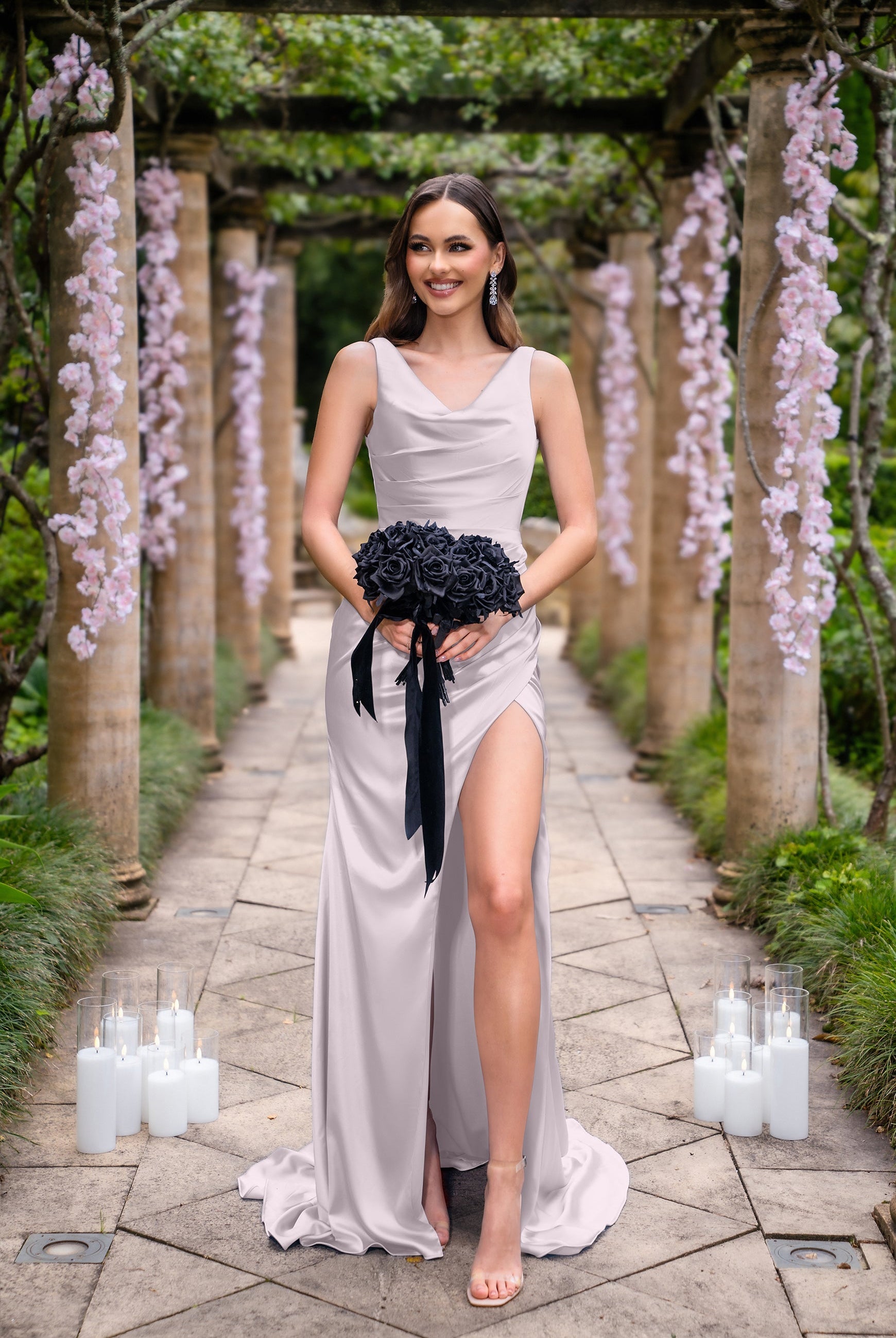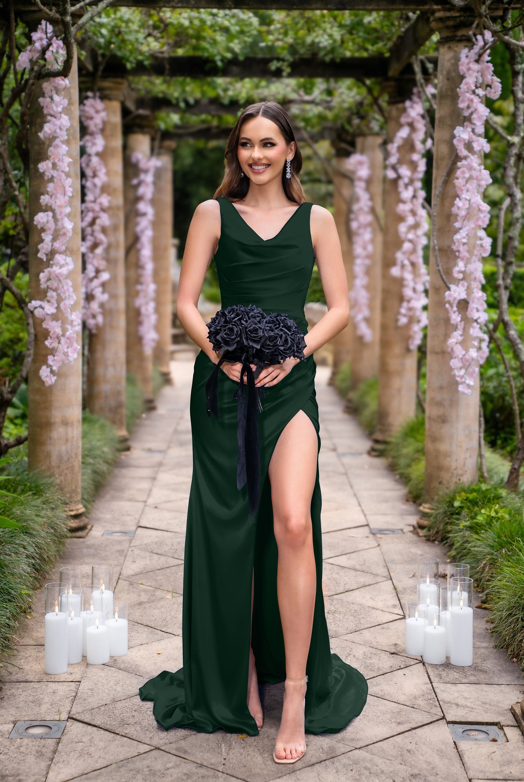 Satin gowns for bridesmaids are incredibly versatile, making them suitable for various occasions; your bridesmaids can re-wear their gowns to other formal events after your big day.