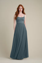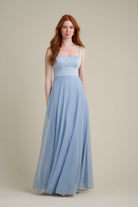 The lovely Agnes gown features a gorgeous pairing of textures and tones, with a stretch jersey bodice and fluid stretch chiffon skirt.