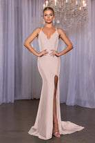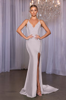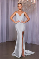Introducing the Alexa, a stunning V-front fitted dress that effortlessly combines elegance and allure. Designed for bridesmaids who want to feel both comfortable and chic, this gown features a daring high slit that adds a touch of drama, while the flowing train enhances its captivating silhouette. Crafted with high-stretch fabric, the Alexa moves with you, ensuring you dance the night away in style. Perfect for any wedding setting, it is a piece that will make your bridal party shine.