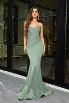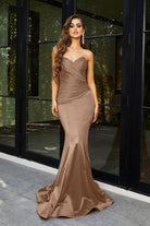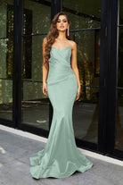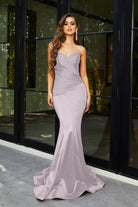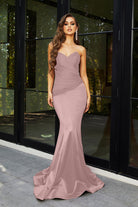 Introducing the Alice‚ a strapless stunner that exudes timeless elegance and charm. This fitted gown features a flattering mermaid silhouette, designed to beautifully enhance your curves. The pointed bodice and folded pleat details at the front create a sophisticated, structured look that is both chic and figure-flattering. Crafted from high-stretch fabric for all-day comfort, the Alice is the perfect blend of glamour and ease, ensuring you feel confident and radiant as you celebrate in style.