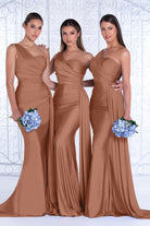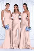 Introducing the Anna‚ is a timeless one-shoulder masterpiece that perfectly combines sophistication and style. This fitted gown features a chic side skirt for an elegant, flowing silhouette. Made from high-stretch fabric, the Anna offers a flattering fit and all-day comfort, making it the ideal choice for bridesmaids ready to shine on the big day.