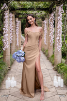 Introducing the Anastasia‚ is a show-stopping choice for the modern bridesmaid who wants to feel both elegant and confident. Featuring a romantic sweetheart neckline, this gown is enhanced by draped off-the-shoulder straps that add a touch of timeless allure. The visibly boned bodice provides structure while creating a flattering, sculpted silhouette. With delicate ruching across the stomach to enhance your curves and a daring high side slit for a dramatic finish, the Anastasia is both chic and unforgettable. Designed with stretch for a comfortable fit, this gown beautifully balances elegance with modern sophistication, making it perfect for an unforgettable celebration.