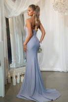 Introducing the Dua, a stunning strapless design that exudes sophistication and elegance. The form-fitting silhouette is beautifully complemented by chiffon ruching on the bodice and subtle ruching at the hips, creating a flattering, figure-enhancing shape. A daring slit adds a touch of allure, making this gown as captivating as it is comfortable. Crafted from soft jersey fabric with medium to high stretch, the Dua offers both style and flexibility.