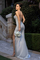 Introducing the Elena, a striking fitted floor-length dress that perfectly marries sophistication with a touch of daring. Featuring visible boning in the bodice for a beautifully structured look, this gown enhances your natural curves while providing a flattering fit. The delicate thin spaghetti straps add a graceful touch, and the alluring high slit ensures you can move with confidence and flair on the dance floor. Elena offers both comfort and elegance, making it the ideal choice for bridesmaids who want to shine. Step into this stunning gown and celebrate in unforgettable style alongside the bride!