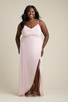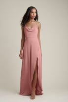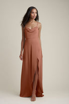 The minimalism of the 90s is back and better than ever with the Eliot gown; this chic, strappy look features a beautifully draped cowl neckline.