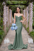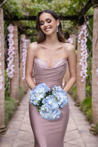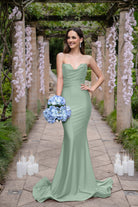 Introducing the Gabriella, a stunning choice for your bridal party that radiates elegance and charm. This strapless, sweetheart-shaped gown features a flattering mermaid silhouette that beautifully hugs the curves and flows into a subtle train at the back. Adorned with exquisite lace trim across the bodice, the Gabriella adds a touch of romance and sophistication. With its high stretch fabric, this gown ensures your bridesmaids will feel comfortable and confident while celebrating your special day. Let the Gabriella be the perfect blend of style and grace for your wedding!