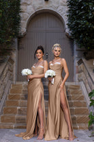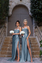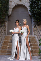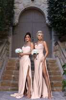 Introducing the Isabella, a captivating strapless fitted dress that exudes timeless elegance and charm. Adorned with exquisite pearl detail trim along the bodice, this gown adds a touch of sophistication that is sure to make you stand out in the bridal party. The alluring side slit not only enhances the silhouette but also. The Isabella offers both comfort and style, ensuring you feel confident and radiant as you celebrate the special day. Embrace the beauty and grace of the Isabella as you support the bride in unforgettable fashion!