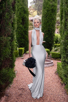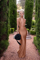 Step into a night of glamour with the stunning Lily. This sultry formal piece features a sleek sleeveless bodice. Sculpting tucks create a dazzling fit, while the self-fabric sashing gracefully wraps the midriff, adding a touch of satiny allure. The formfitting skirt cascades into liquid flutters that gracefully envelop the feet, culminating in a breath-taking floor-brushing train. With the Lily your bridal party will radiate confidence and sophistication, making every moment of the celebration unforgettable.