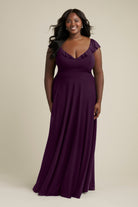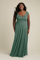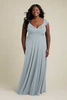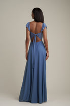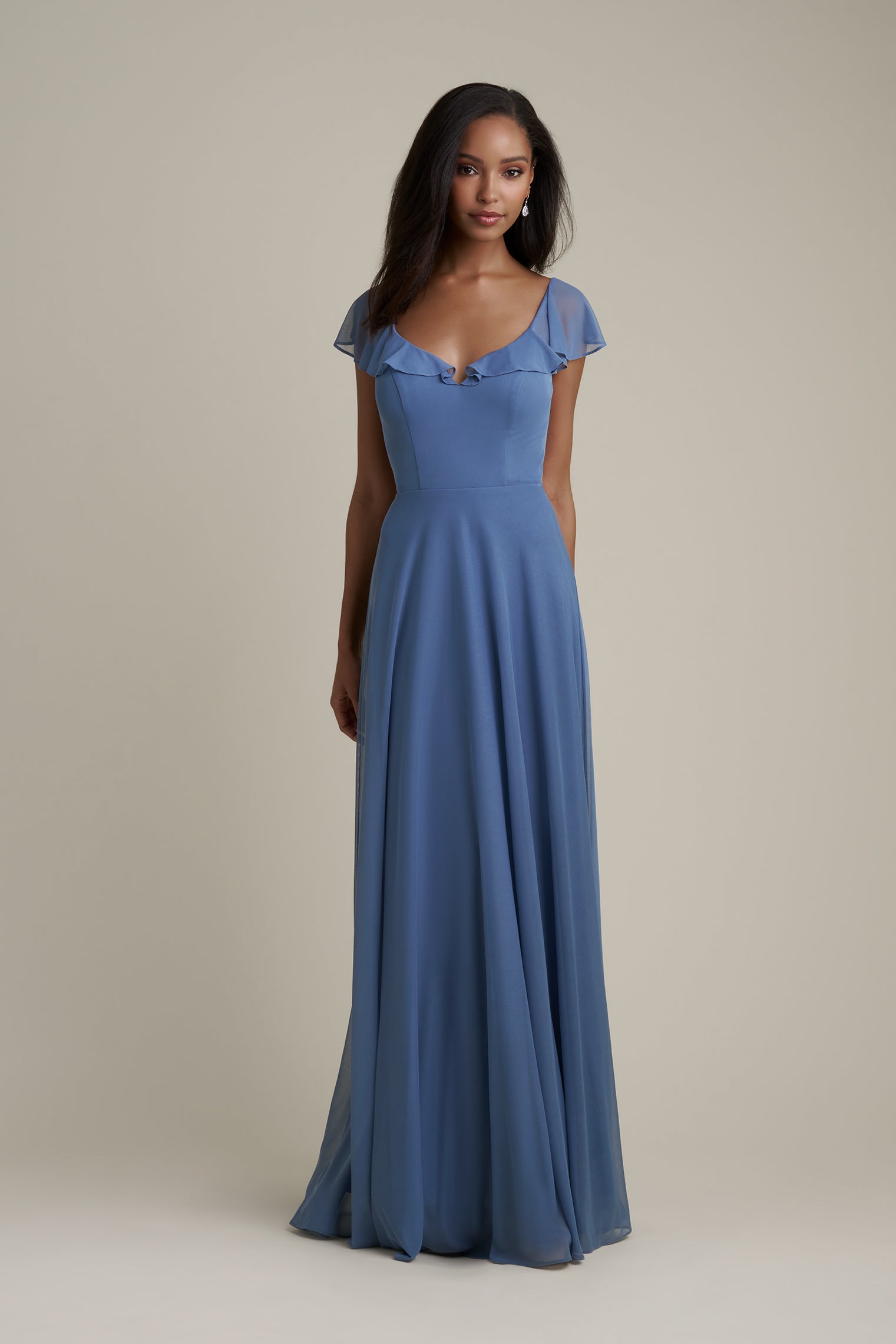 Louisa's delicately ruffled neckline and simple A-line silhouette are accented by a gorgeous tie along the open back.