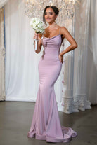 Introducing the Lumina - a stunningly elegant design that exudes grace and sophistication. This fitted gown features a breath taking low back, accentuated by delicate thin straps adorned with romantic rose details for a soft, feminine touch. The softly draped neckline at the front adds an effortless sense of elegance, creating a flawless balance of style and grace. The Lumina is crafted from a luxurious satin fabric with medium stretch.