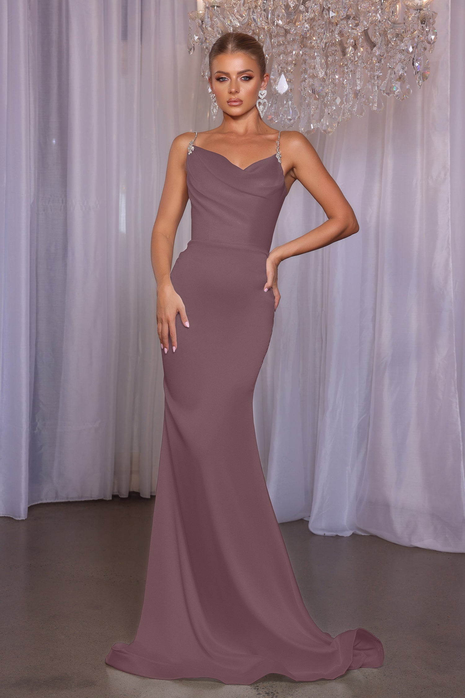 Introducing the Maella, a stunning mermaid fitted masterpiece designed to make your bridesmaids shine. This floor-length gown features exquisite ruching at the bodice, creating a flattering silhouette that hugs curves in all the right places. With its elegant design and dramatic flair, the Maella is perfect for those who want to make a bold statement. Its tailored fit ensures a polished look that enhances confidence and sophistication.
