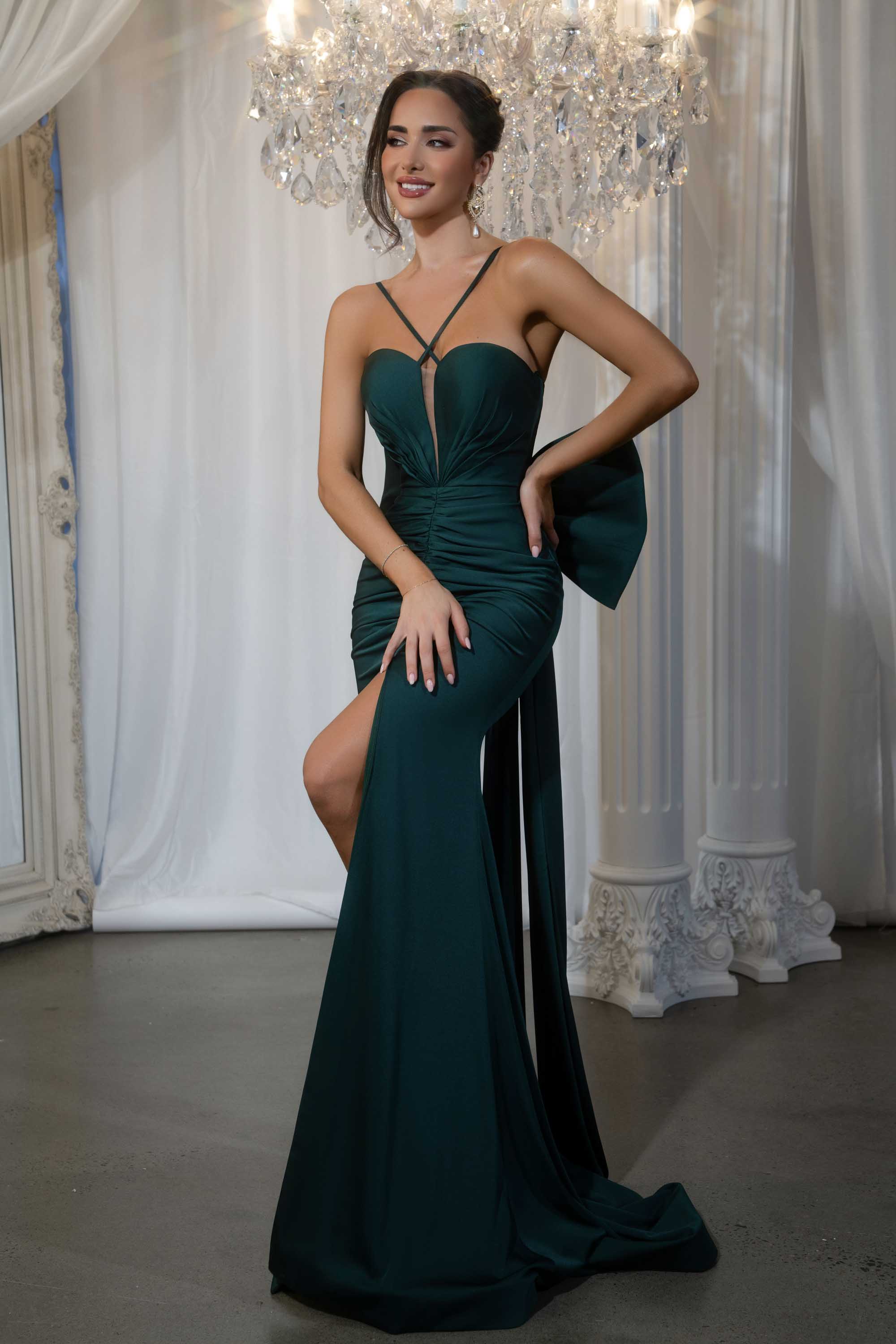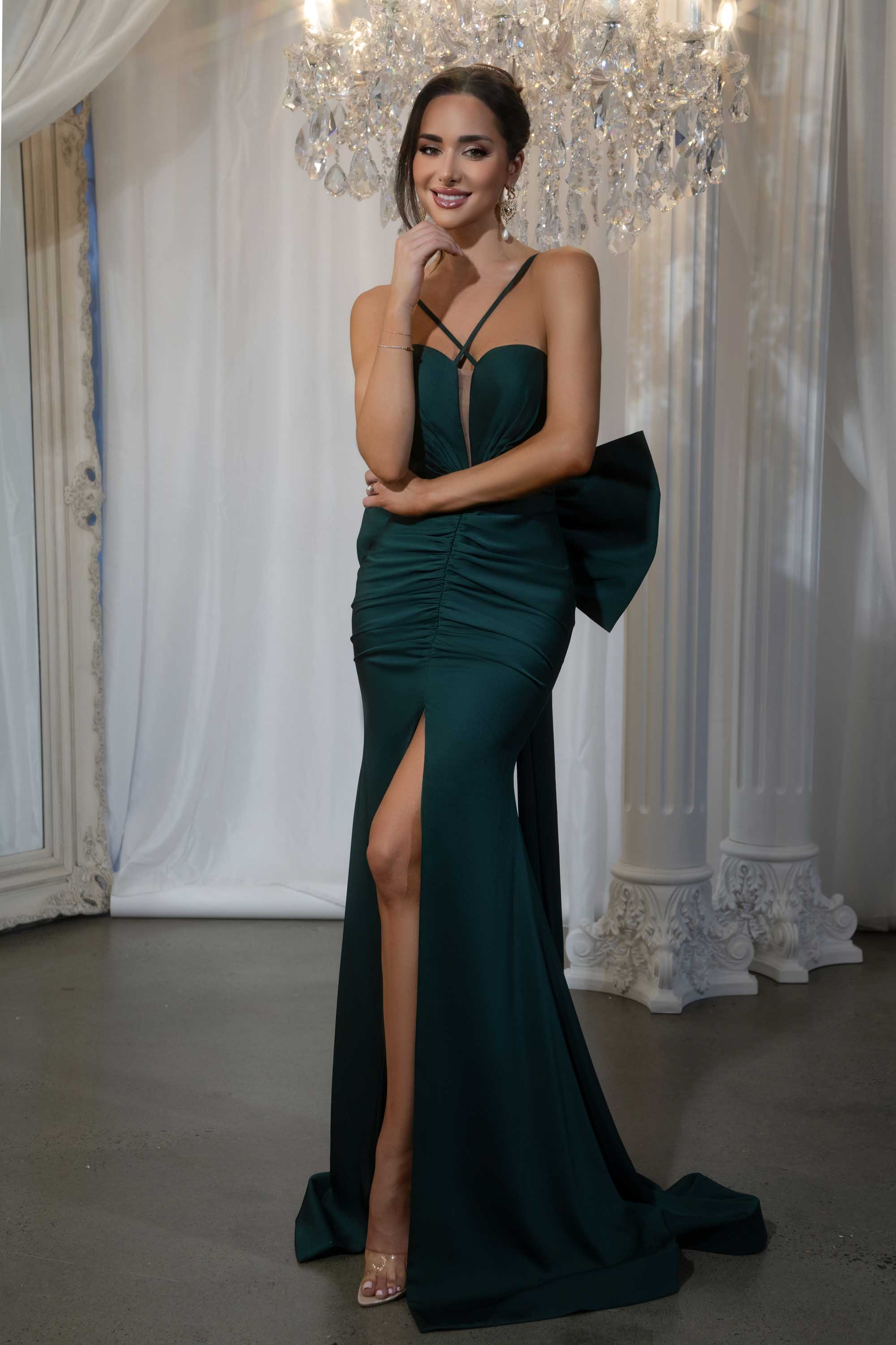 Introducing the Nicola, a beautifully romantic and flattering choice for your bridesmaids. Featuring a sweetheart-shaped bodice with delicate thin straps that cross over at the front, this gown is designed to enhance every figure. The soft ruching across the bust and down the body creates a stunning silhouette, while a daring center split adds a touch of drama. For an extra wow factor, the gown is finished with a detachable bow at the back, adding a playful yet sophisticated flair. Crafted from luxurious satin fabric with medium stretch, the Nicola offers the perfect balance of comfort and elegance, making it an unforgettable option for your bridal party.