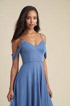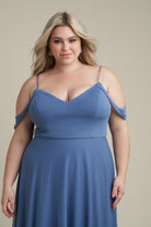 Meet Shelley: an ultra-romantic A-line gown with draped cold shoulder straps.