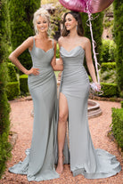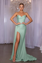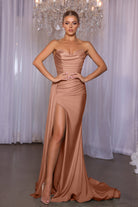 Introducing the stunning Viola, a strapless fitted masterpiece designed to turn heads and make your bridesmaids feel fabulous. Featuring exquisite ruching across the bodice and hips, this gown beautifully enhances every silhouette while adding a touch of elegance. The chic side skirt and daring high slit create a sense of drama and sophistication, ensuring your bridal party stands out on your special day. Crafted from high-stretch fabric, the Viola offers both comfort and a flattering fit, allowing your bridesmaids to celebrate and dance the night away with confidence. Elevate your wedding look with the captivating Viola, where timeless beauty meets modern allure!